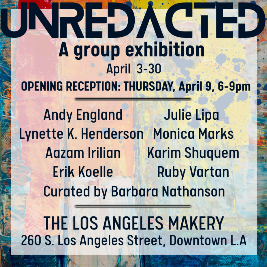 This dynamic group of artists first connected through a shared critique group and now reunites to present their latest work. Rooted in dialogue, experimentation, and mutual support, Unredacted reveals the raw, thoughtful, and fully realized work that has grown out of that ongoing creative exchange.